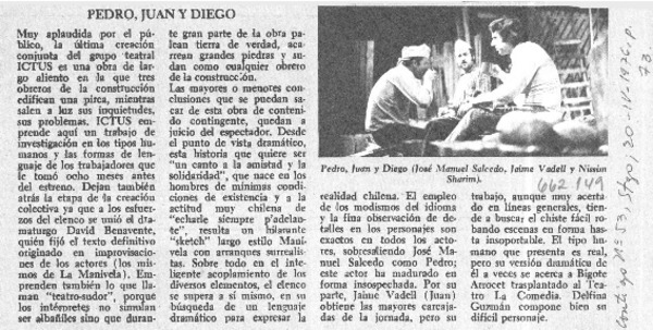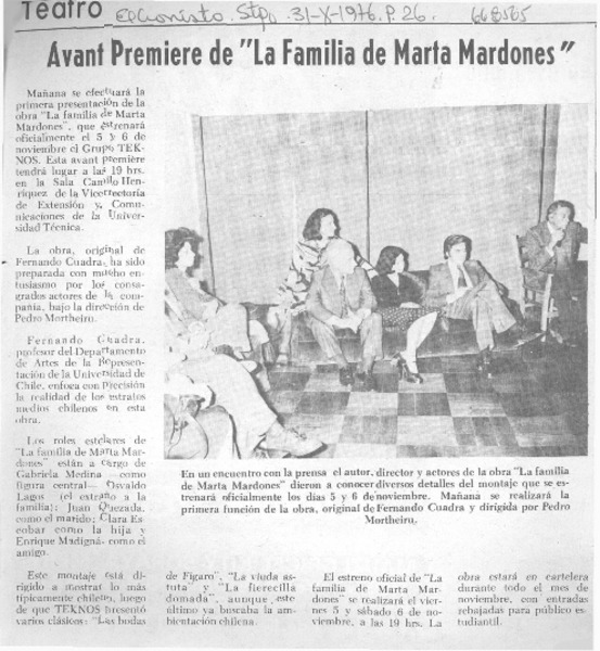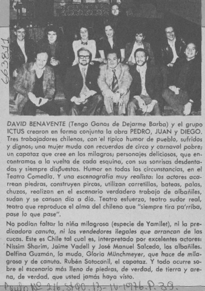 Actores de "sol tardío" en la obra teatral del momento. [artículo]