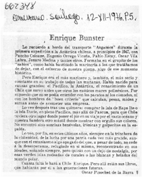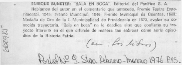 Autores chilenos - Bunster, Enrique - Ángel para Chile