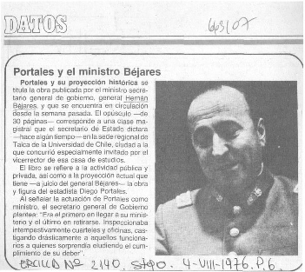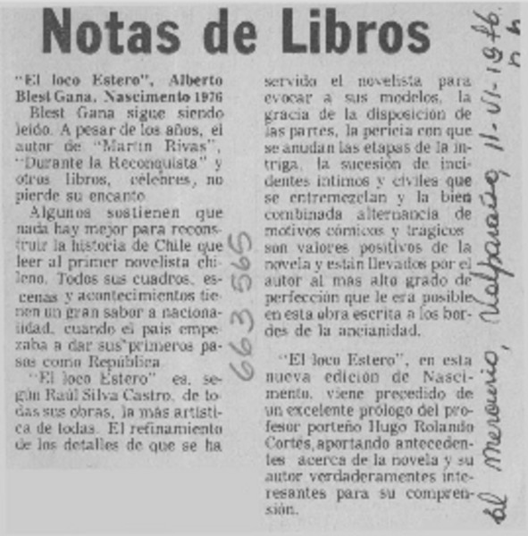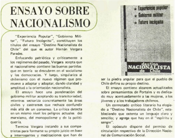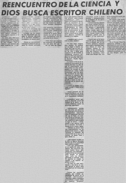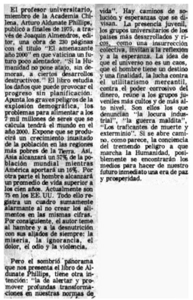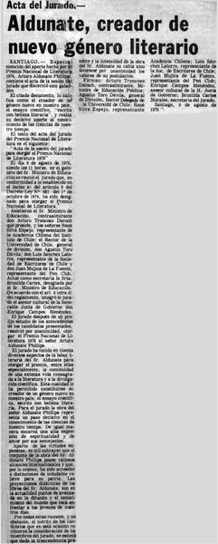 Aldunate, creador de nuevo género literario. [artículo]