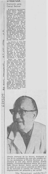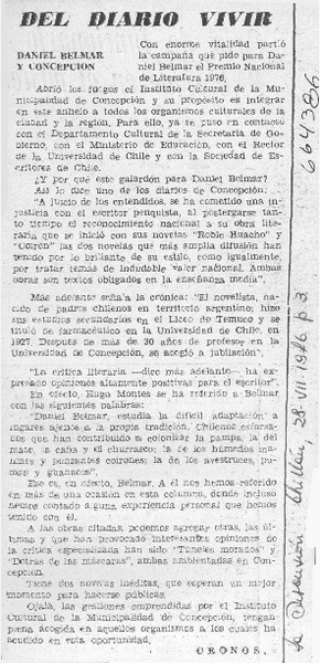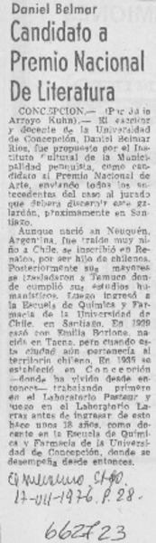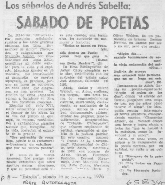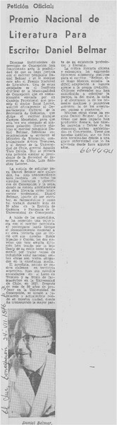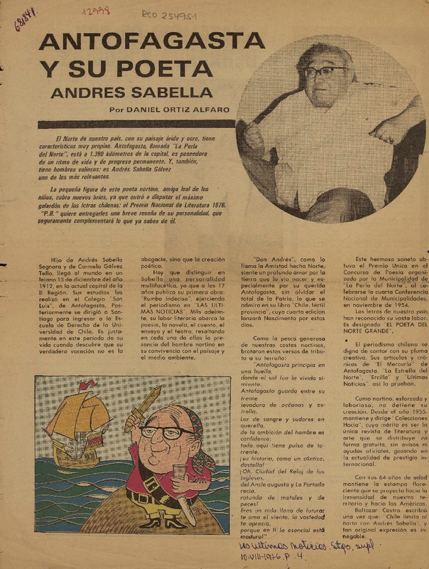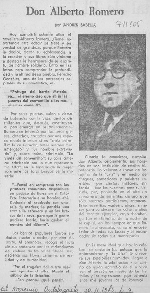 Universidades postulan a escritor Andrés Sabella. [artículo]