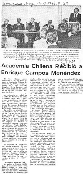 Academia chilena recibe a Enrique Campos Menéndez. [artículo]