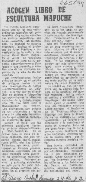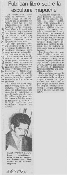 Acogen libro de Escultura mapuche. [artículo]