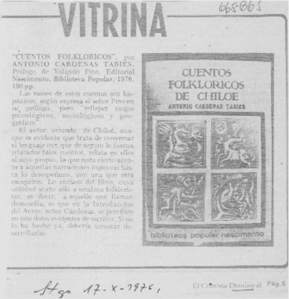 Ventana del libro [artículo] Antonio Cárdenas Tabies.
