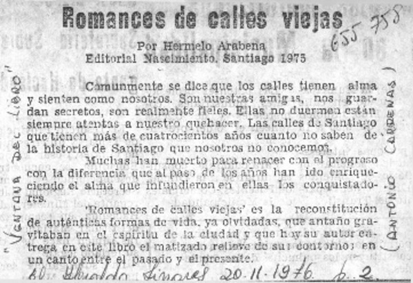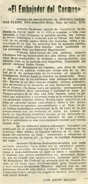 Versos a modo de coplas : [comentario] [artículo] Antonio Cárdenas.