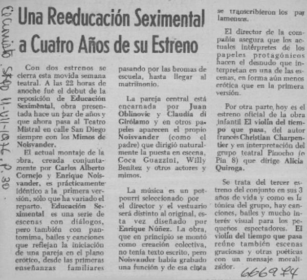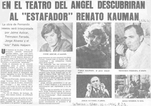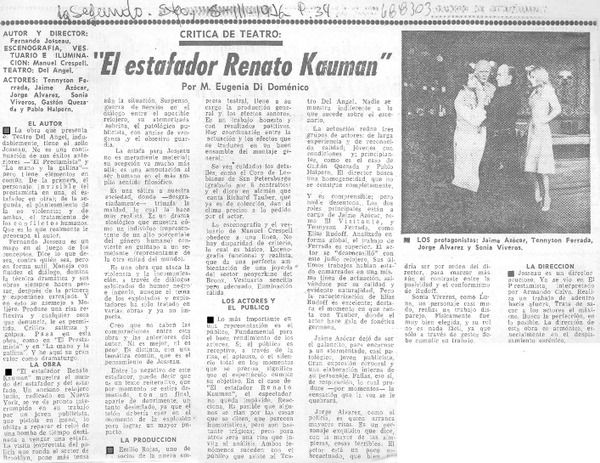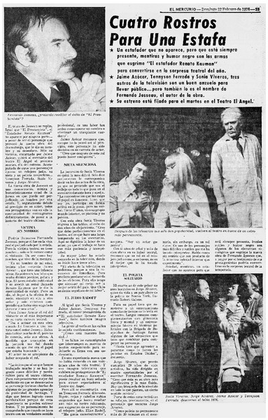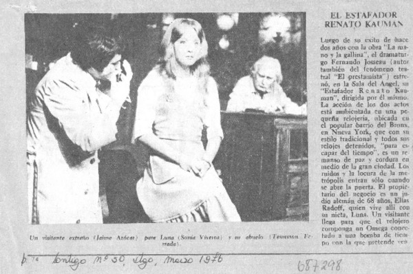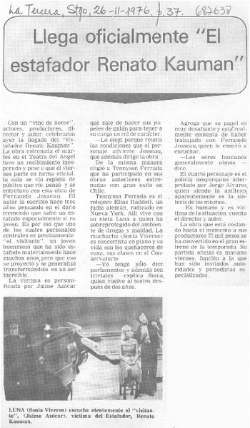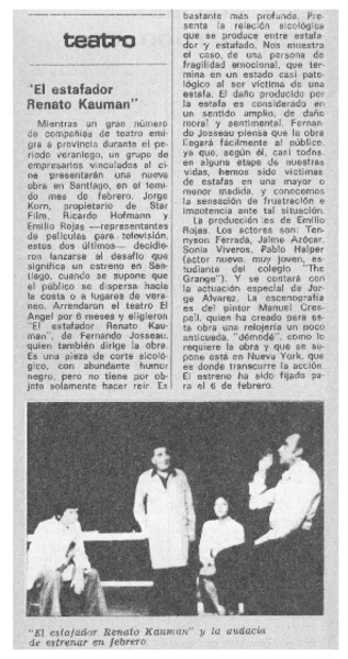 101 representaciones celebra "El estafador Renato Kauman" en cine Arte de Viña del Mar. [artículo]