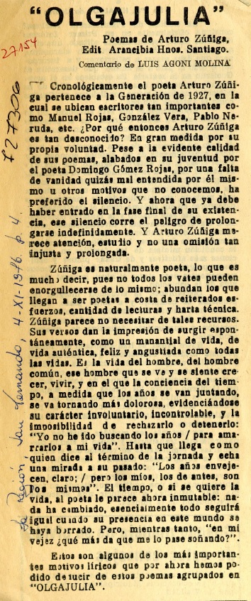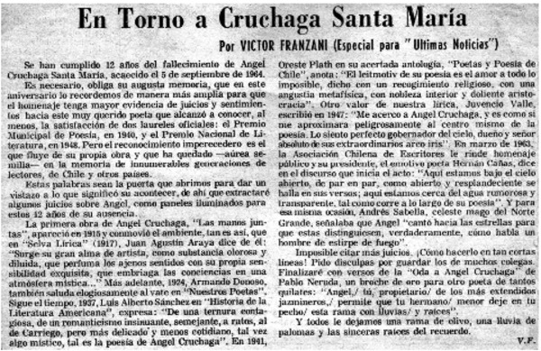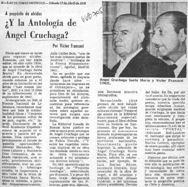 Y la antología de Angel Cruchaga? [artículo] Víctor Franzani.