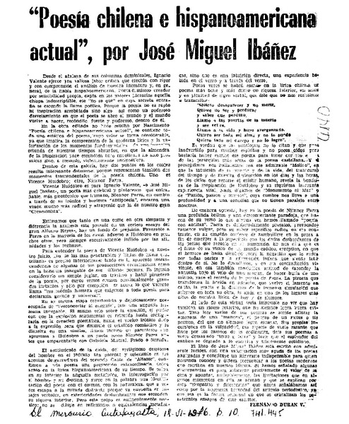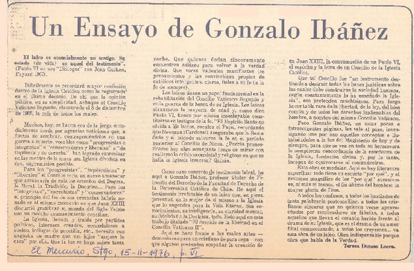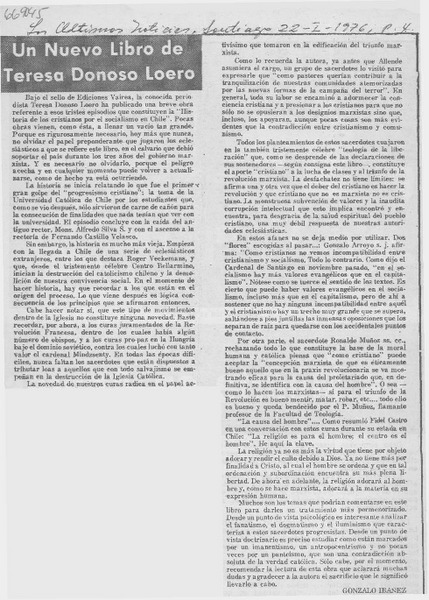 Un nuevo libro de Teresa Donoso Loero [artículo] Gonzalo Ibáñez.