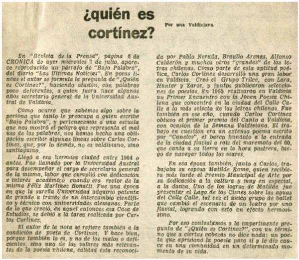 Un perdido [artículo] Hugo Rolando Cortés.