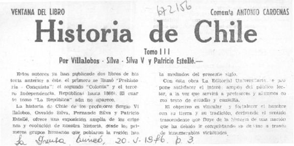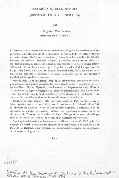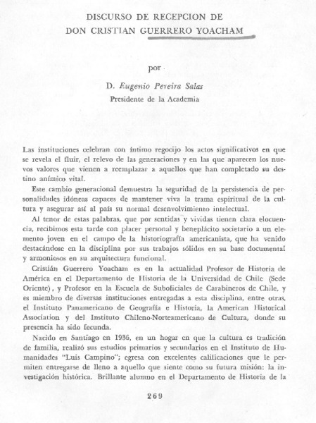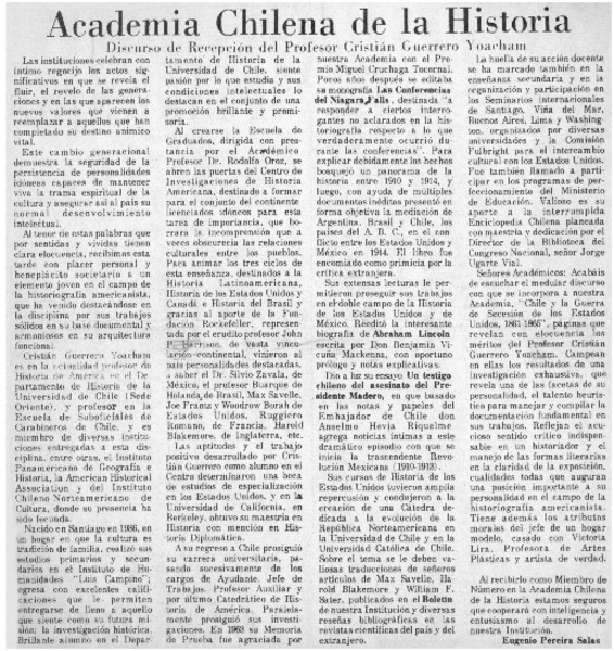 Academia Chilena de la Historia [artículo] Eugenio Pereira Salas.