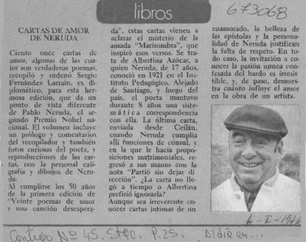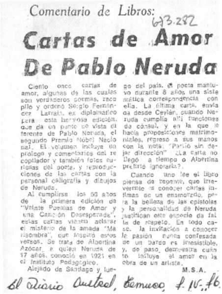 Algo más sobre las "Cartas de amor de Neruda" [artículo] Fernando de la Lastra.