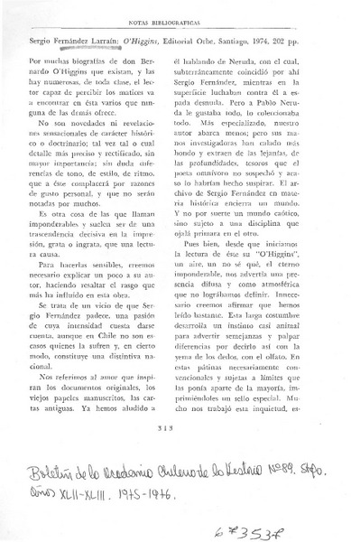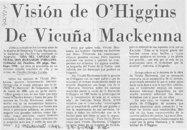 Visión de O'Higgins de Vicuña Mackenna. [artículo]