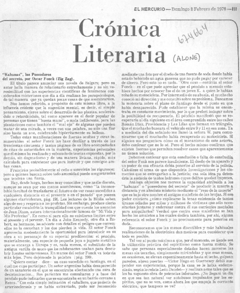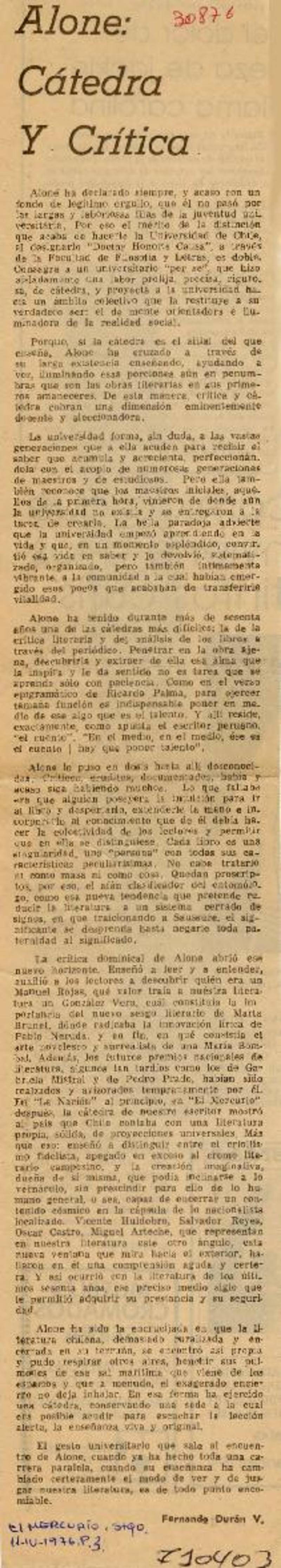 Alone: Cátedra y Crítica [artículo] Fernando Durán V.