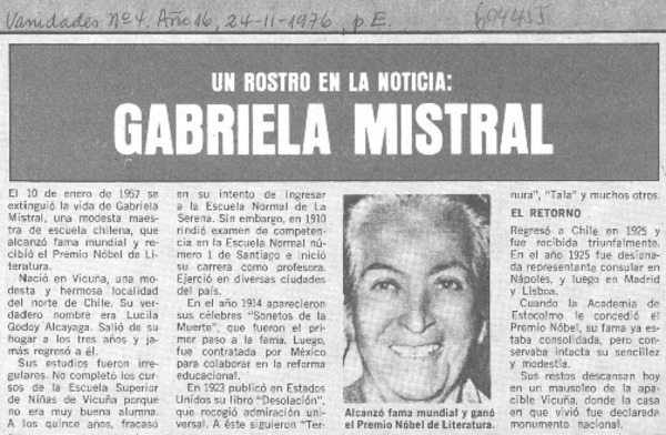 Autoras chilenas - Mistral, Gabriela