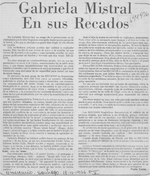 América en Gabriela Mistral [artículo] E. M.