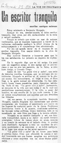 Un escritor tranquilo [artículo] Enrique Neiman.