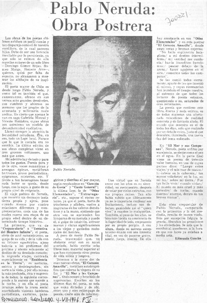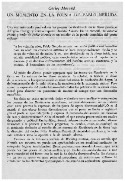 Un momento en la poesía de Pablo Neruda [artículo] Carlos Morand.