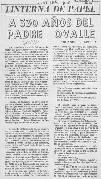 A 330 años del Padre Ovalle [artículo] Andrés Sabella.