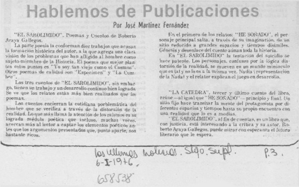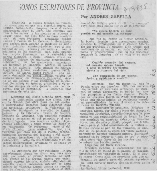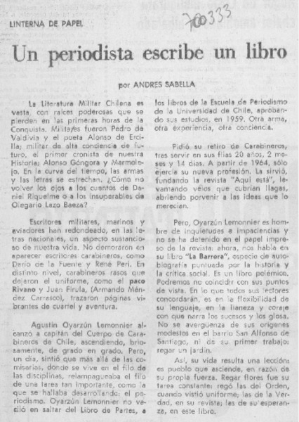 Un periodista escribe un libro [artículo] Andrés Sabella.