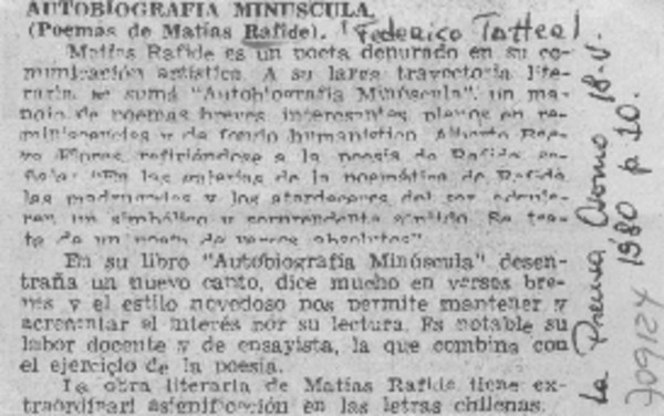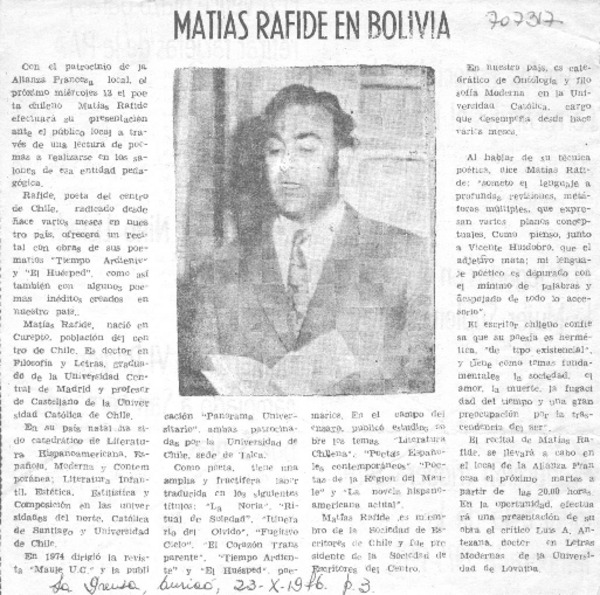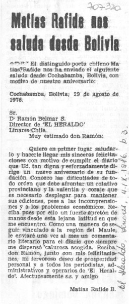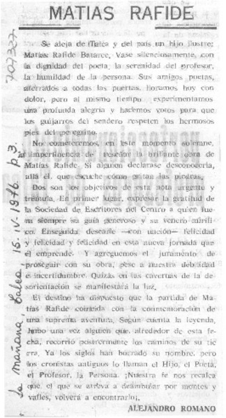 Al poeta Matías Rafide [artículo] M.P.