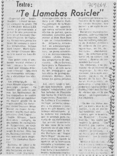 Autores chilenos - Te llamabas Rosicler - Rivano, Luis