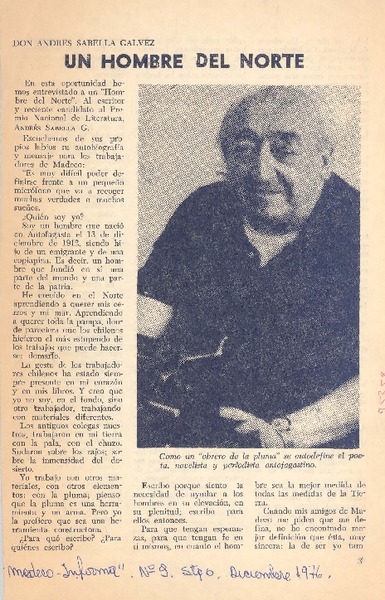 Un hombre del norte [artículo] Juan Contador Molina <y> Germán Améstica A.
