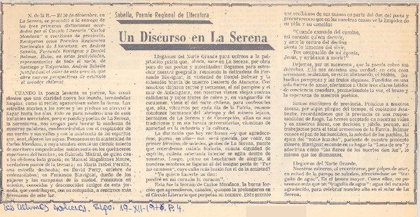 Un discurso en La Serena [artículo] Gaby Garfias.
