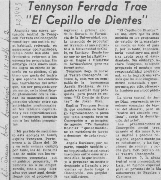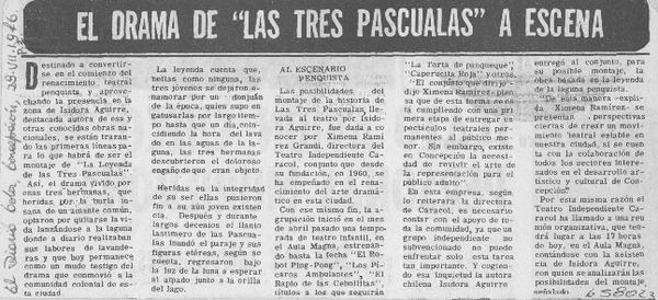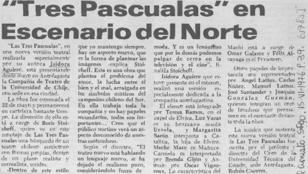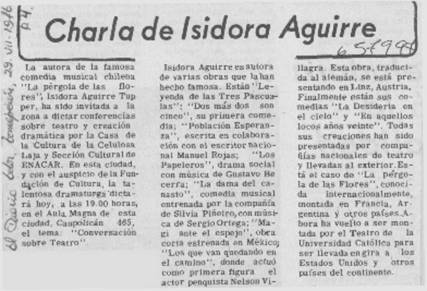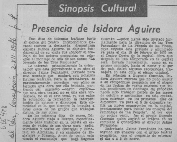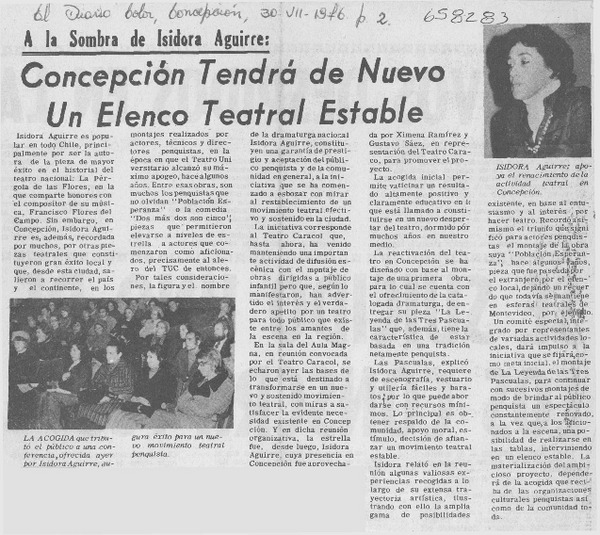 Actores penquistas inician trabajo con Isidora Aguirre. [artículo]