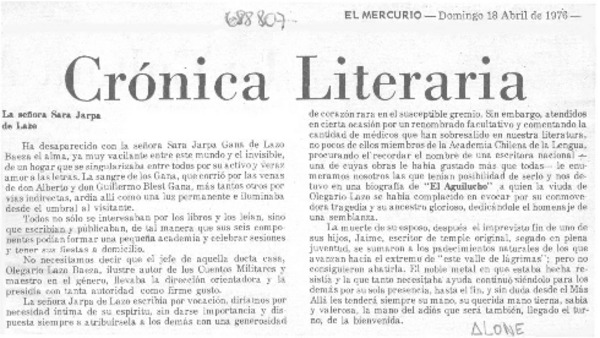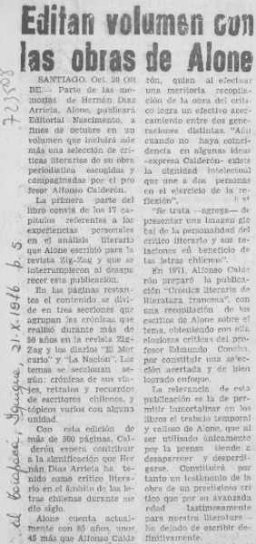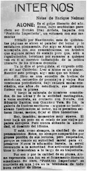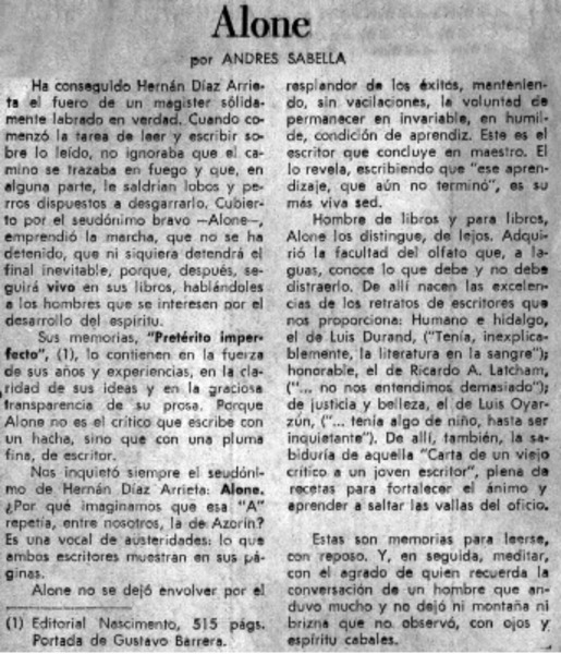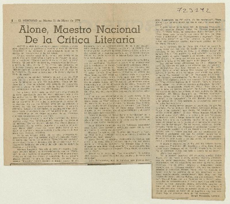 Alone, maestro Nacional de la Crítica Literaria [artículo] Sergio Fernández Larraín.