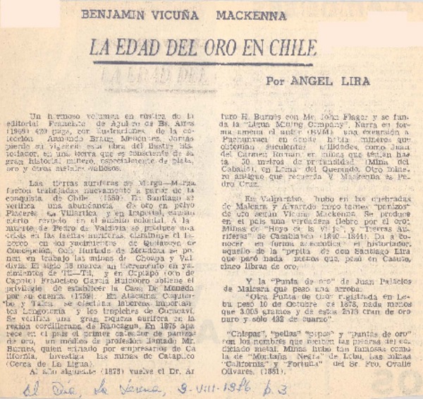 Vicuña Mackenna, chileno ejemplar [artículo] Por, Almagro Santander.