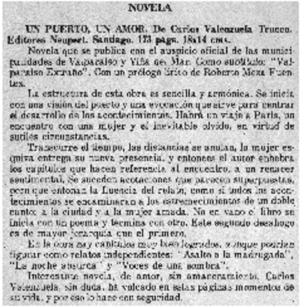 Autores chilenos - Valenzuela Trucco, Carlos - Puerto, un amor