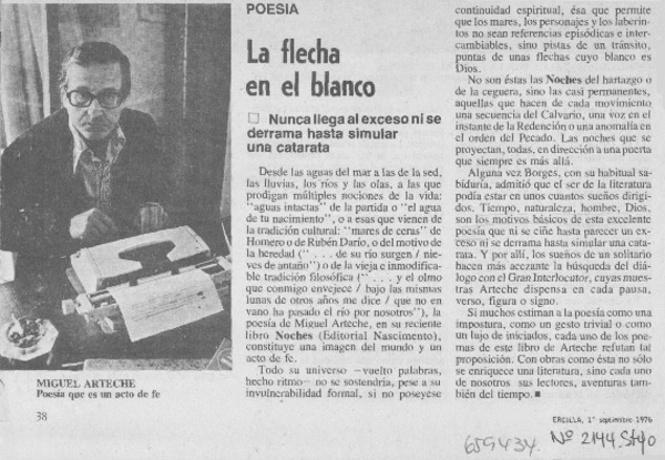 Un poeta trascendente, Miguel Arteche [artículo] Claudio Ariel Fernández D.