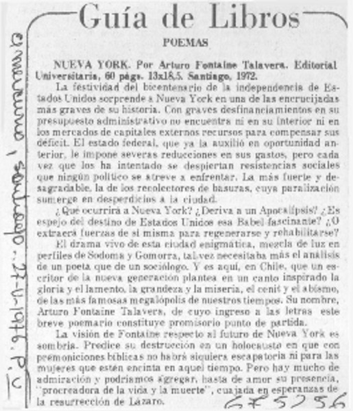 Viajes a ojo: "Nueva York" [artículo] Floridor Pérez.