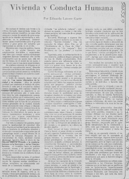 Vivienda y conducta humana [artículo] Eduardo Latorre Gaete.