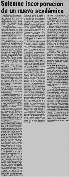 Academia chilena recibió a Enrique Campos Menéndez. [artículo]
