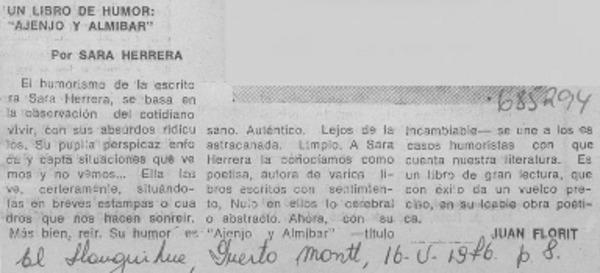 Un libro de humor: "Ajenjo y almíbar" [artículo] Juan Florit.