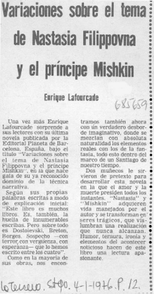 Autores chilenos - Lafourcade, Enrique - Variaciones sobre el tema de Nastasia Filipovna y el príncipe Mishkin