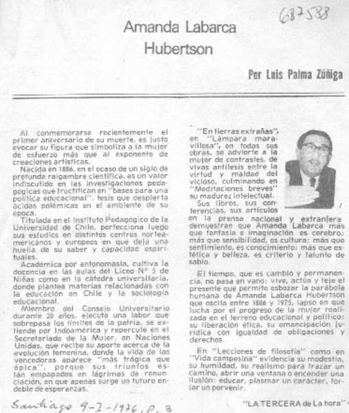 Amanda Labarca Hubertson [artículo] Luis Palma Zúñiga.