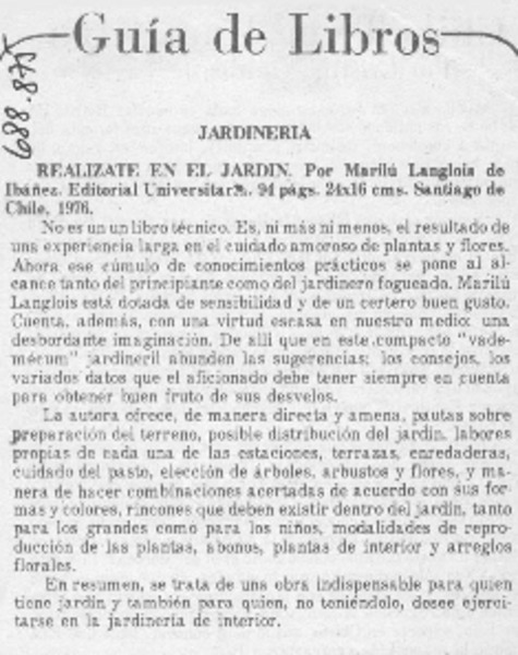 Autoras chilenas - Langlois de Ibáñez, Marilú - Realízate en el jardín