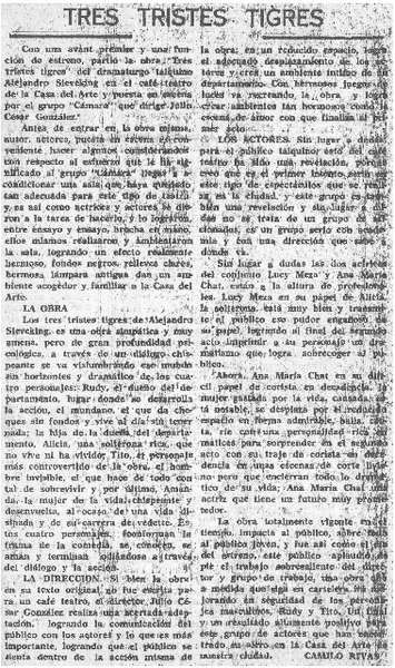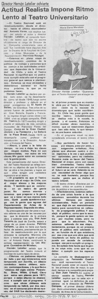 Actitud realista impone ritmo lento al teatro universitario [artículo] María Elena Mendoza.