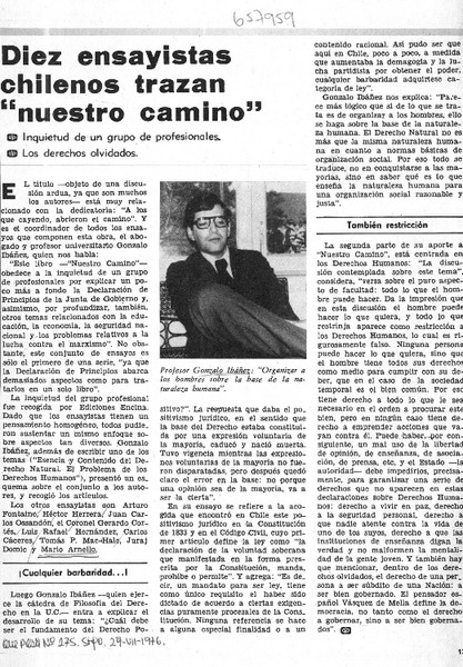 Un ensayo de Gonzalo Ibáñez [artículo] Teresa Donoso Loero.