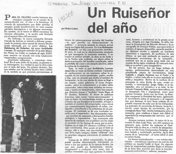 Un ruiseñor del año [artículo] Pedro Labra Herrera.