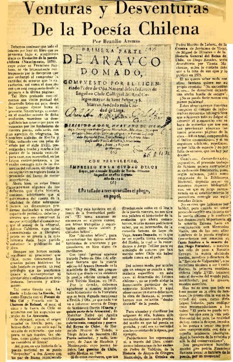 Venturas y desventuras de la poesía chliena [artículo] Braulio Arenas.