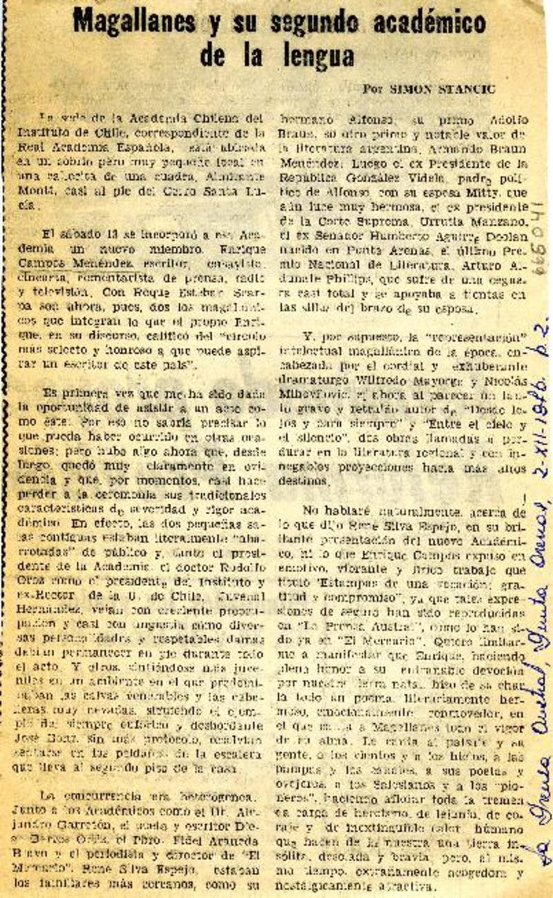 Vivencias magallánicas [artículo] H. E.