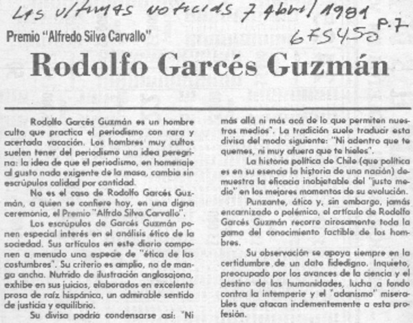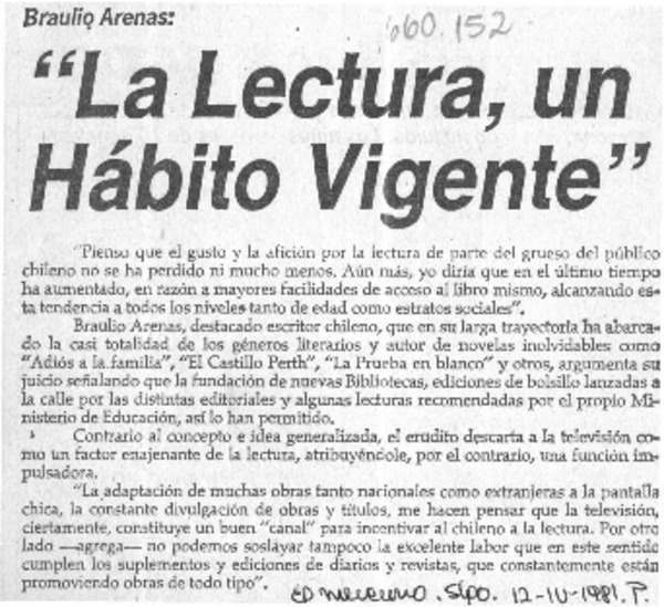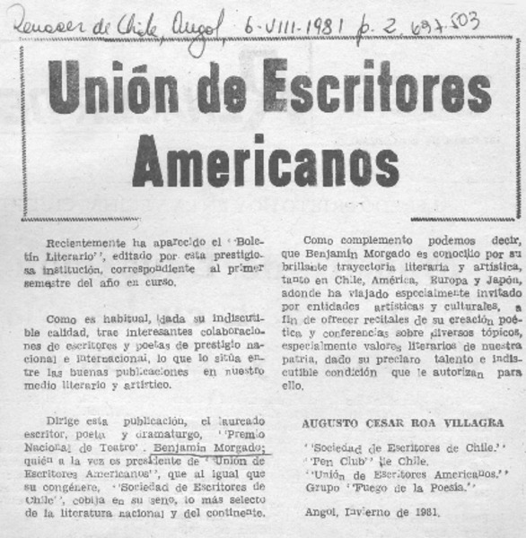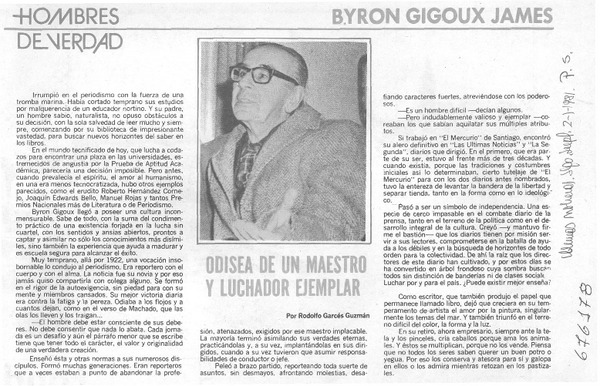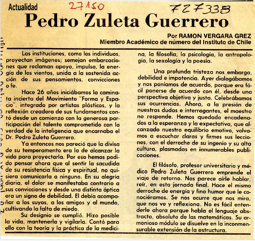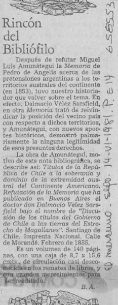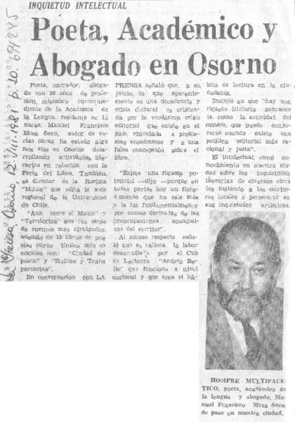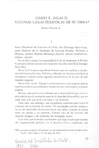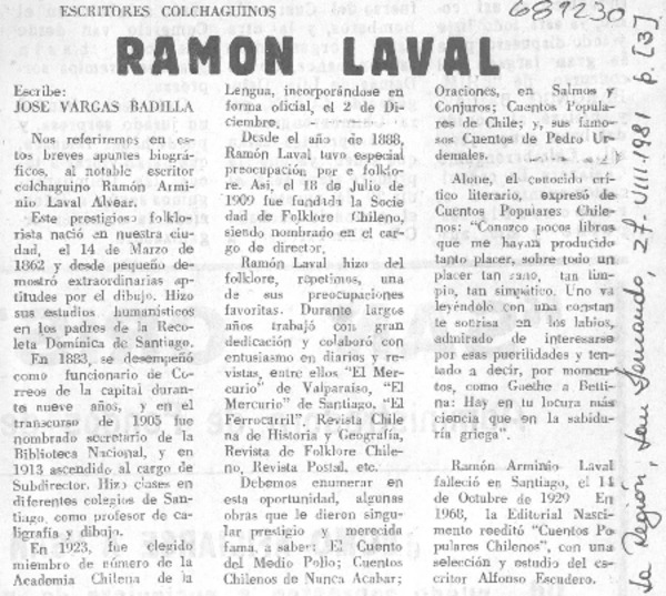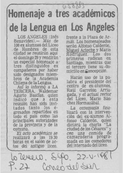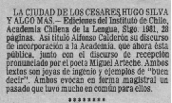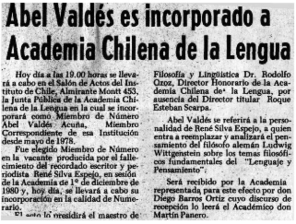 Abel Valdés ves incorporado a Academia Chilena de la Lengua. [artículo]