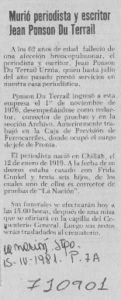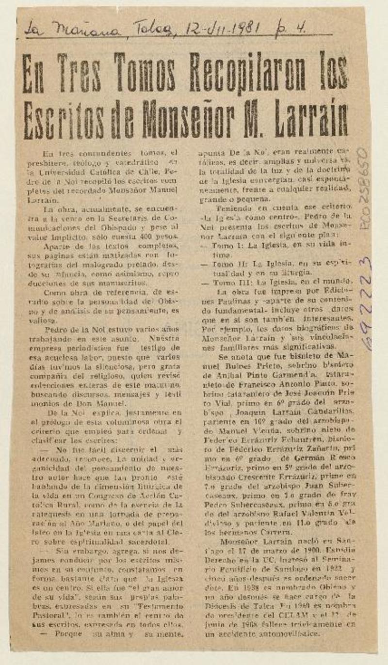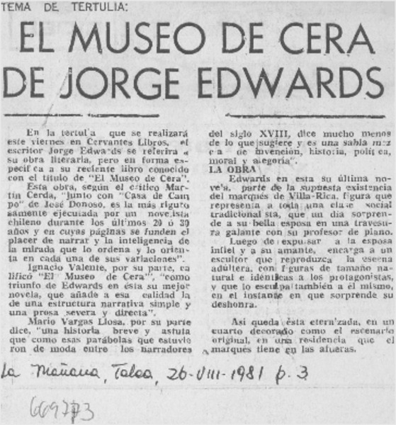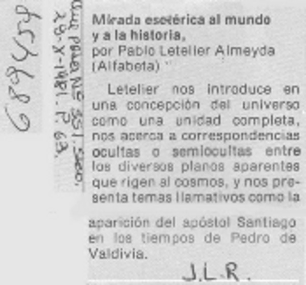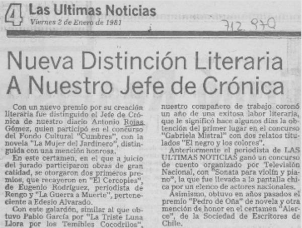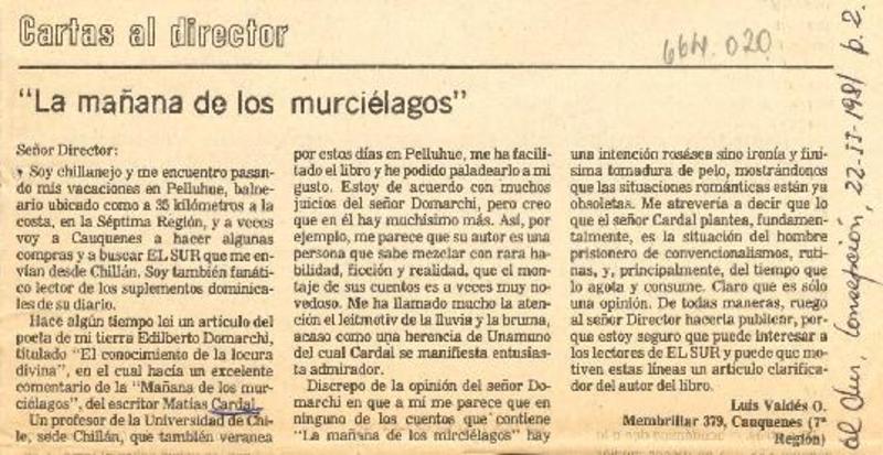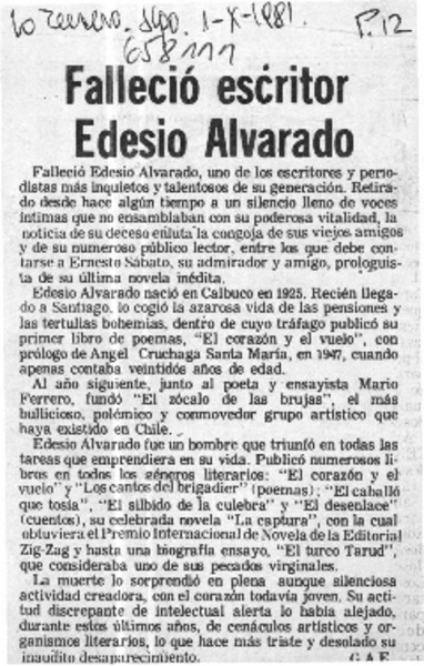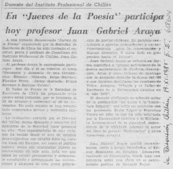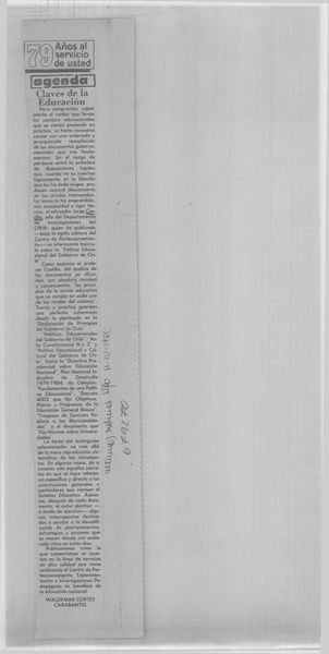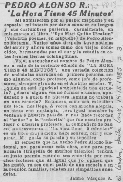 Abel Valdés ves incorporado a Academia Chilena de la Lengua. [artículo]