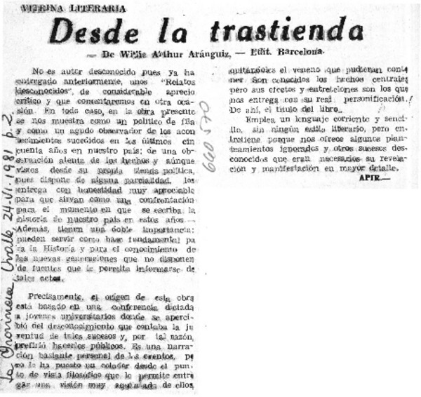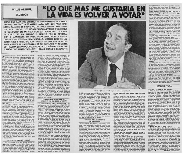 Willie Arthur "desde la trastienda" [artículo] Maria de la Cruz.