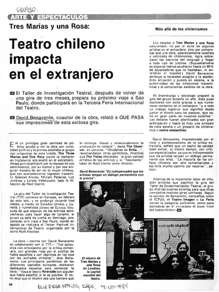 Autores chilenos - Benavente, David - Tres Marías y una Rosa