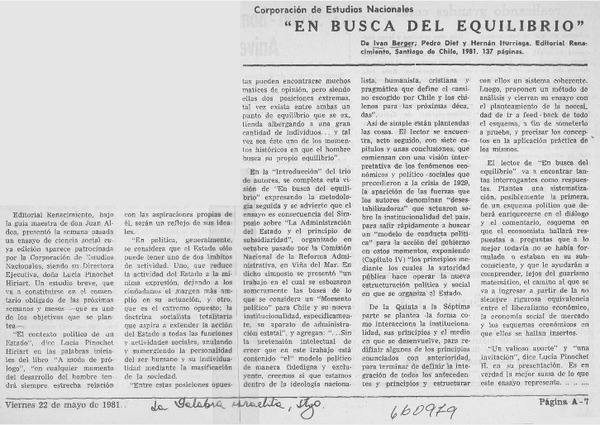 Autores chilenos - Berger, Iván - En busca del equilibrio - Diet, Pedro - Iturriaga, Hernán