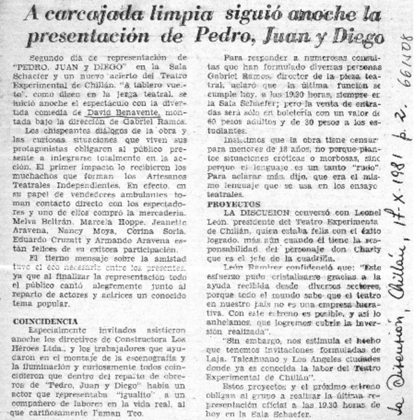 A carcajada limpia siguió anoche la presentación Pedro, Juan y Diego. [artículo]