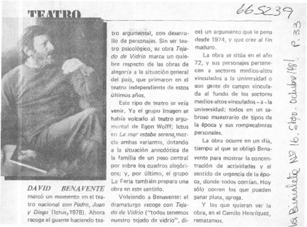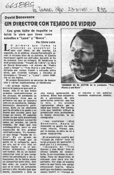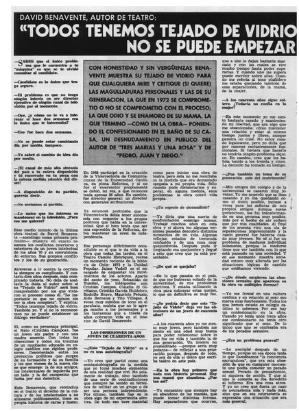 Autores chilenos - Benavente, David - Tejado de vidrio